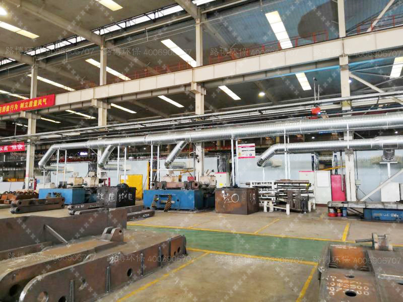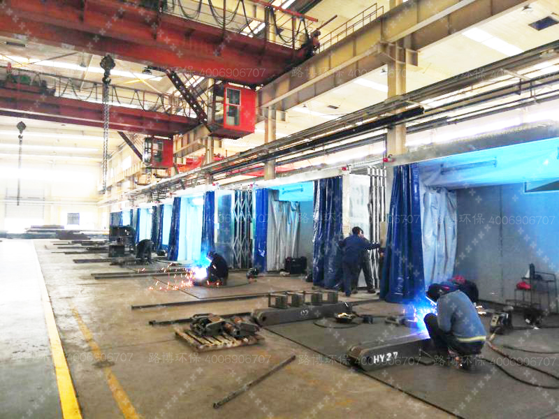 近幾年,機械制造行業在市場需求的推動下整體保持持續增長態勢,西安某知名煤礦機械有限公司是以機械制造加工為主的綜合性煤礦機械企業,煙氣粉塵的主要來源于車間焊接煙氣粉塵的車間排放,車間需除塵區域共1跨5柱距(柱距9米)內且煙氣粉塵量較大,青島路博環保結合用戶現場工況及需求將除塵區域設計劃分為7個工位,每個工位單獨采用一套伸縮房(7m*5m*3m)機構對煙塵進行收集。