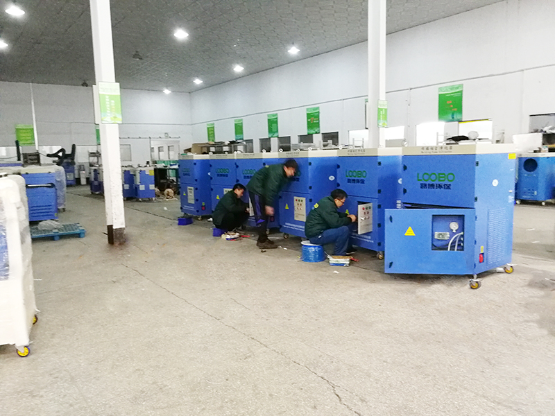 通過風機引力作用,焊煙廢氣經萬向吸塵罩吸入設備進風口,設備進風口處設有阻火器,火花經阻火器被阻留,煙塵氣體進入沉降室,利用重力與上行氣流,首先將粗粒塵直接降至灰斗,微粒煙塵被濾芯捕集在外表面,潔凈氣體經濾芯過濾凈化后,由濾芯中心流入潔凈室,潔凈空氣又經活性碳過濾器吸附進一步凈化后經出風口達標排出。