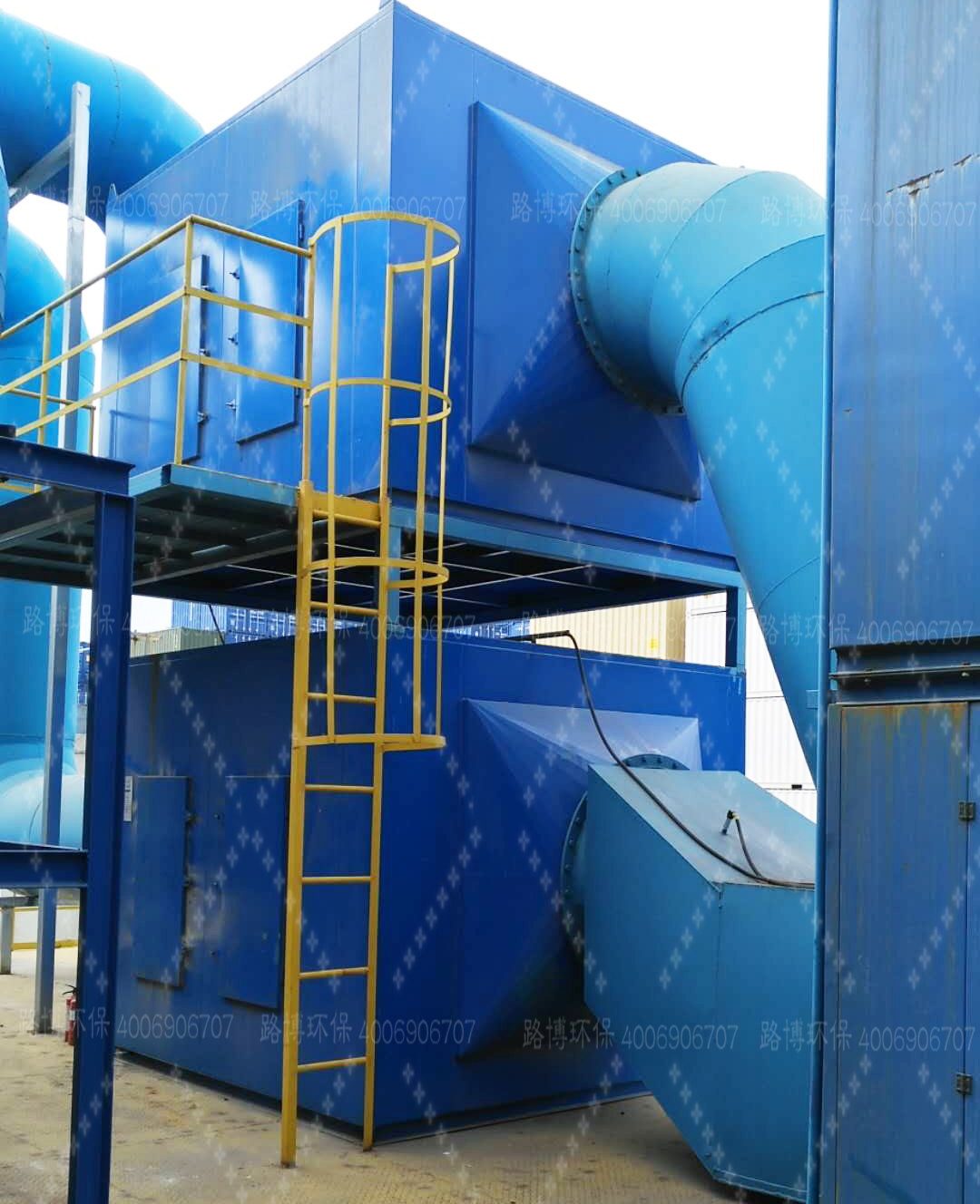 青島路博環保針對用戶現場工況及技術工藝要求制定出一整套的廢氣處理工藝,本項目包含多條生產線的廢氣處理,整套系統吸附、脫附和催化氧化過程由PLC實現自動控制。相互之間能實現廢氣吸附、脫附再生冷卻、再吸附自動控制轉換,保持廢氣處理系統自動運行。