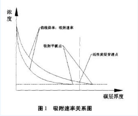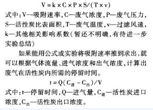 實際中影響碳層吸附速率的因素有:吸附質濃度、風壓、溫度、活性炭比表面積等等,各條件參數之間的關系可以表示為以下公式:
