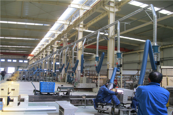 7、使用萬向吸氣臂,可在懸停于三維空間的任意位置,360度輕松靈活到達任意方位發塵點,焊接工人可更有效率的工作。