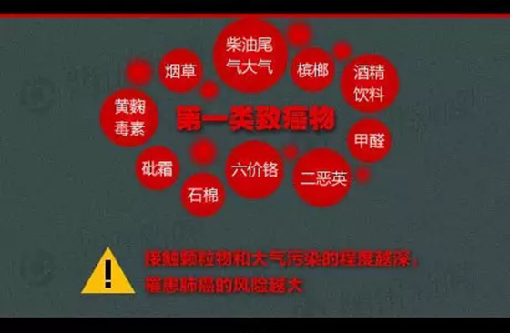 致癌作用大氣中化學性污染物中具有致癌作用的有多環芳烴類和含Pb的化合物等,其中3,4-苯并芘引起肺癌的作用最強烈。燃燒的煤炭、行駛的汽車和香煙的煙霧中都含有很多的3,4-苯并芘。大氣中的化學性污染物,還可以降落到水體和土壤中以及農作物上,被農作物吸收和富集后,進而危害人體健康。