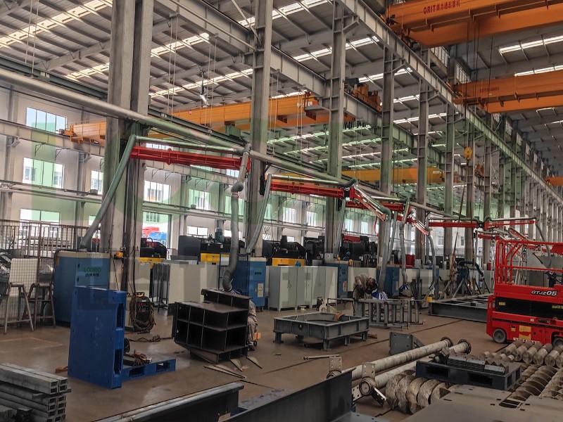 3.焊機吸氣臂一端固定于廠房立柱,前端搭載二氧化碳送絲機,作業覆蓋面積大,臂長可選2米-10米的大半徑,可在任意角度停留,為焊接除塵提供有力保障。