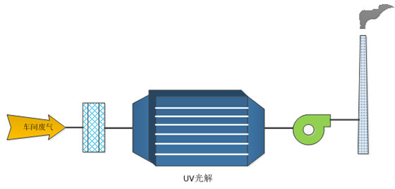 1、根據實際排放的廢氣,如果只是簡單除去廢氣中的惡臭氣體則而采用的方式為:利用高能高臭氧UV紫外線照射惡臭氣體和TiO2光催化技術,催化裂解惡臭氣體。