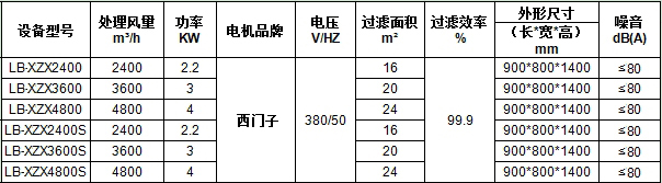 四、LB-XZX移動式焊煙凈化器設備參數:
